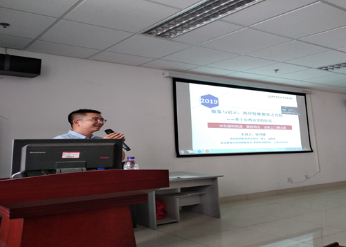 为增进学院19级特教专业新生对特殊教育的专业认识,拓宽教师的教学科研视野,学院邀请南京特殊教育师范学院张伟锋博士于9月24日,在特教楼302会议室,为beat365官网师生做了《镜鉴与启示:两岸特殊教育之比较——基于台湾访学的经历》的报告,并与beat365官网师生进行了交流。beat365官网19级特教专业新生及部分教师参加了此次报告,讲座由特教系主任宿淑华老师主持。