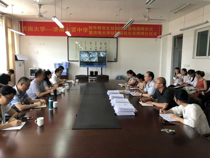 2019年6月27日下午,beat365英国官方网站教育与心理科学学院王本法副院长一行前往济南七贤中学,同七贤中学的领导和老师们一起召开了关于“合作学习”的研讨会。参加会议的有王本法副院长、张素玲教授、张继明副教授、刘福才副教授、魏淑华副教授、乔福强博士以及2018级教育管理专业和心理健康教育专业的全体教育硕士研究生,济南七贤中学参加会议的有校长马千里、副校长李航珍和四位一线老师。