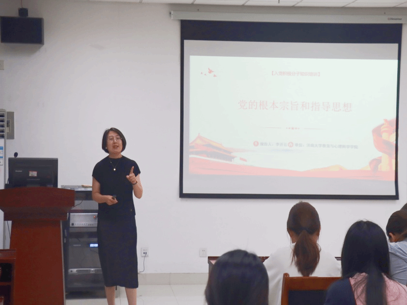 为深入学习党的二十大报告和习近平新时代中国特色社会主义思想,加强对入党积极分子和发展对象的理想信念教育,进一步明确党的根本宗旨和指导思想,5月28日,教育与心理科学学院于特教楼A302开展《党的根本宗旨和指导思想》学习教育专题党课,学院副院长李开云主讲,2024年上半年党员发展对象和入党积极分子参加。