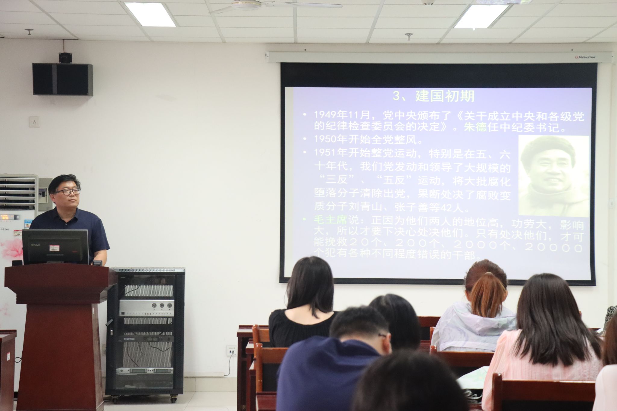 6月11日下午,教育与心理科学学院在特教楼A302举办党纪学习教育专题党课。专题党课由学院党委书记季竹君主讲,学院全体教工党员参加。