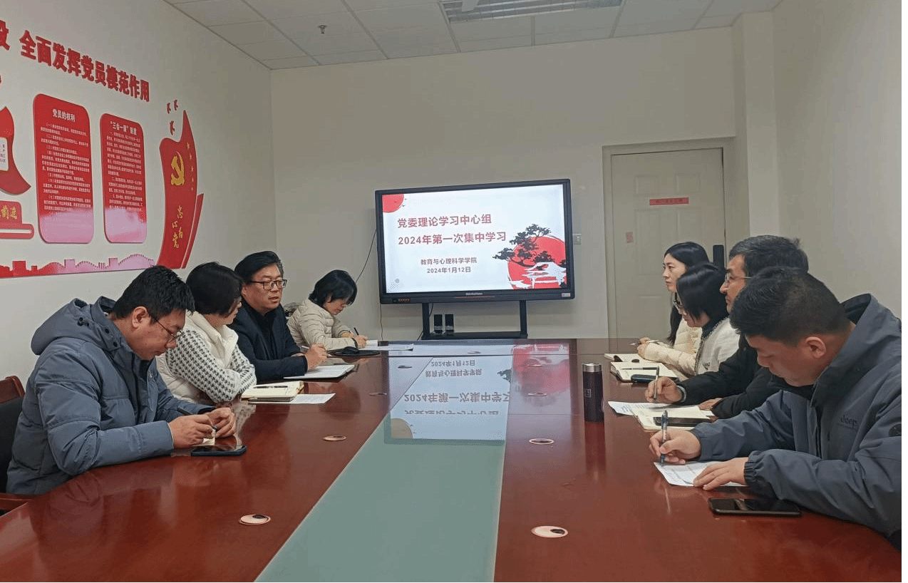 1月12日上午,教育与心理科学学院党委理论学习中心组进行了2024年首次集体学习,深入学习了习近平总书记关于党的建设的重要思想。结合学校党建工作要求和学院党建工作进行了交流研讨。学院党委书记季竹君主持学习并讲话,学院党委理论中心组成员参加了学习、各党支部书记列席。