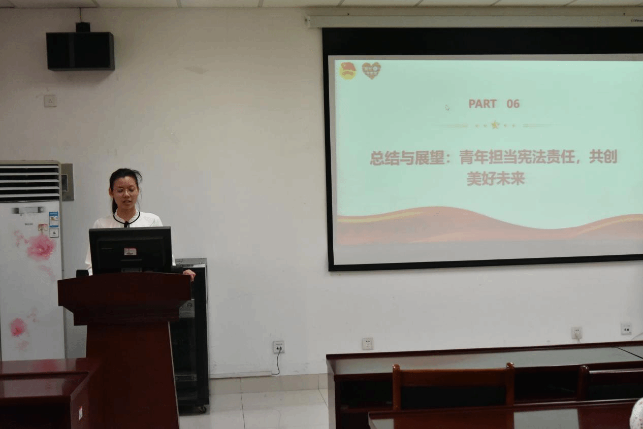 在活动中,主讲人精心挑选了若干与宪法相关的典型案例,引导学生干部进行分组讨论生们热烈讨论,深入挖掘案例中蕴含的宪法议题,积极学习运用宪法精神来剖析和应对实际挑战的方法。主讲人采用通俗易懂的语言,生动阐释了宪法的基本原则与核心要义,使学生干部能够直观把握宪法精髓,显著增强了他们的宪法观念及法治信念。此外,活动中还特别安排了经验分享环节,资深学生干部慷慨地交流了他们的实践心得与管理经验,为其他学生干部提供了宝贵的项目策划、执行及评估指导。这次主题团日活动有效地加深了学生干部对宪法内涵的理解,全面提升了他们的综合素质、法治意识和领导能力。