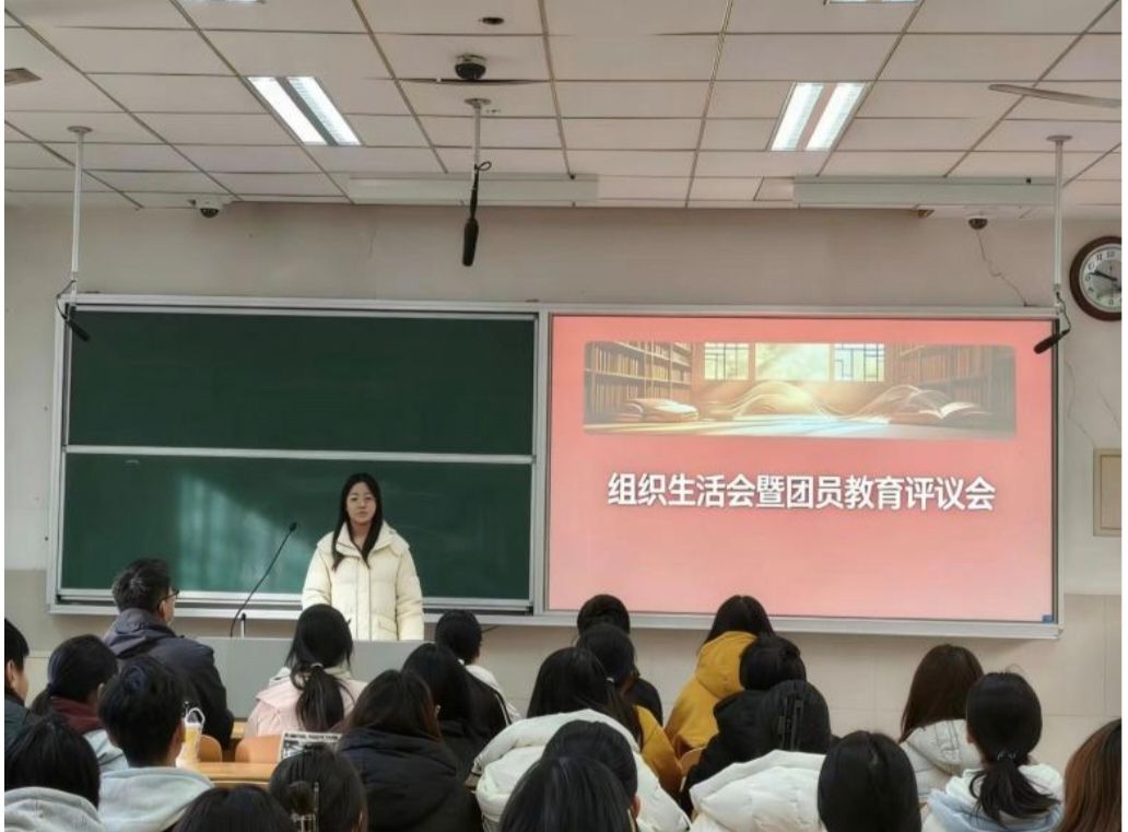 活动现场,全体团员齐声重温团歌,激昂的旋律回荡其间,并进一步凝聚了团员的身份认同感与责任使命感。随后,各班团支部书记详细汇报年度团课开展、纪律建设、问题整改落实等工作情况,全面总结成绩、剖析不足。支部委员及团员依次发言,分享学习体会,深入查摆自身在思想觉悟、纪律作风、先锋模范作用发挥等方面存在的问题,坦诚接受其他团员的批评评议。最后,全体团员面向团旗庄严重温入团誓词。此次主题团日活动既充分肯定了团员青年的成长进步,又直截了当地指出了问题与不足,达到了“红脸出汗、排毒治病、共同提高”的良好效果。团员们纷纷表示,通过此次活动,进一步找准了自身差距、明确了努力方向,今后将以优秀团员为榜样,严用实际行动践行团员的责任与担当。