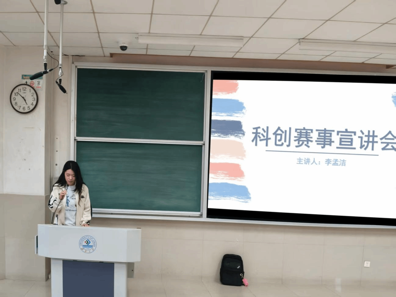 为助力新生深入了解大学科创赛事,点燃科创热情,9月26日,教育与心理科学学院于11J1101教室举办“青春创新创业论坛——科创赛事宣讲会”活动。本次活动由科创部部长李孟洁主讲,现场气氛热烈、座无虚席。