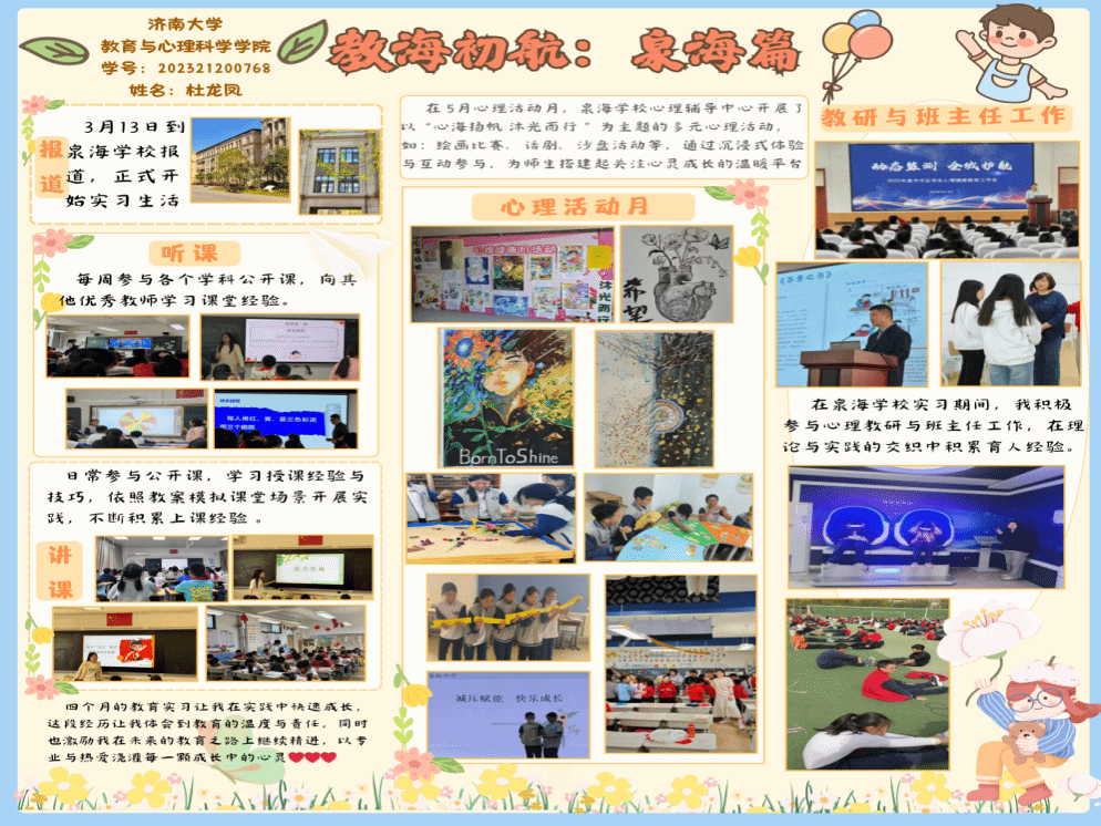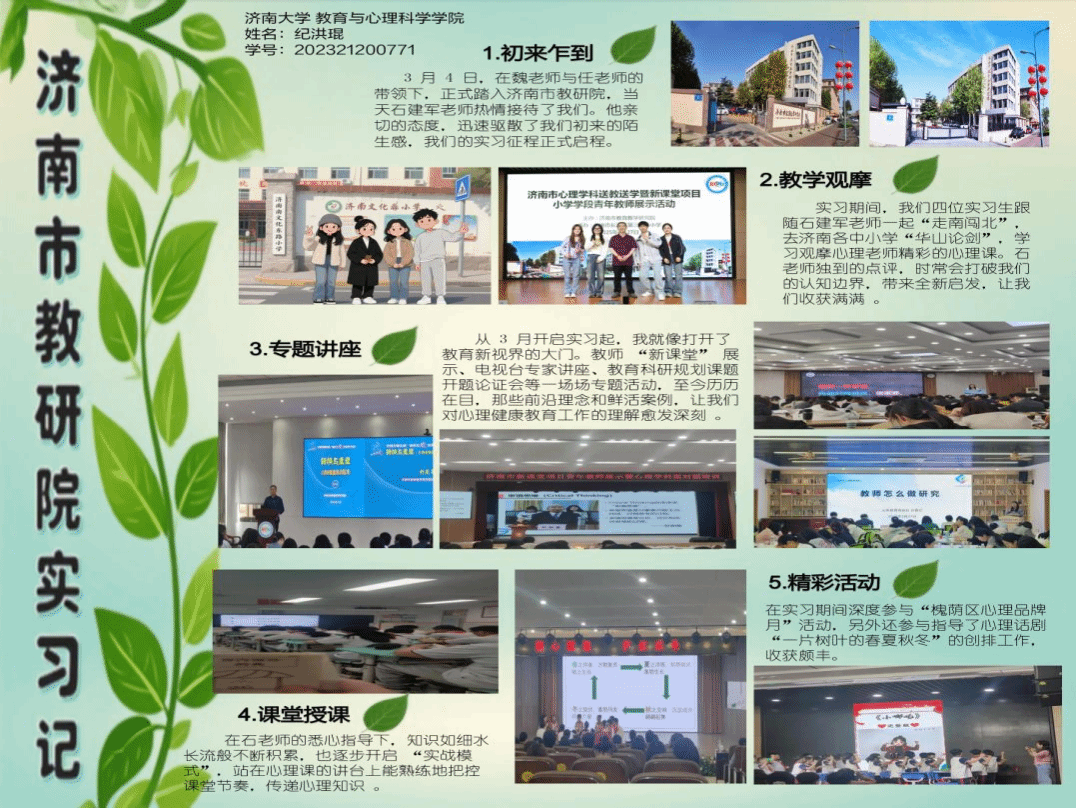 接下来,让我们走进他们的实习生活,一起看他们是如何用青春的画笔,画出美丽的实习画卷吧。