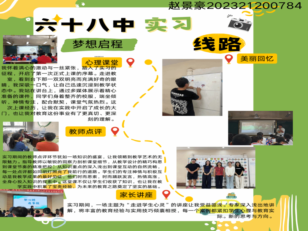 赵景豪:初上心理课,我倍感紧张又兴奋,但是我看到学生们积极互动,投入思考,让我深刻体会到心理课的魅力与价值,也更加坚定了我做好这份工作的决心,心理课不同于其他主课,它更像是一场心灵的碰撞,擦出成长的火花,这份成长,不仅是学生的成长,更是我教学生涯的一次成长!