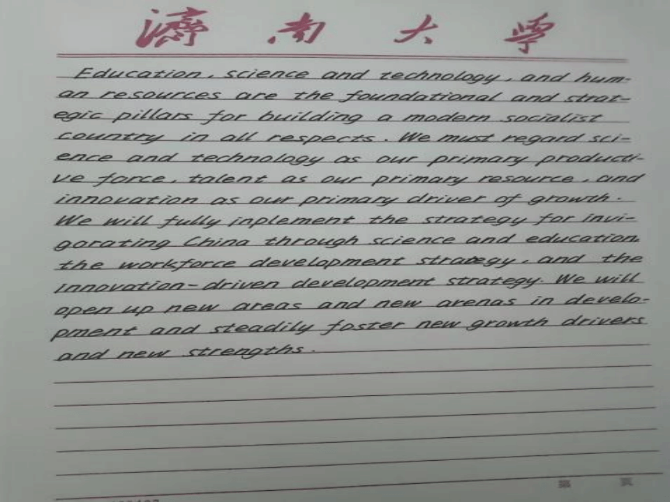 此次活动不仅增强了学生的外语书写能力,激发了学生学习外国文化的热情,更引导学生坚定文化自信、厚积发展底气。教育与心理科学学院将积极推动学生参与文化交流的活动,促进中外文化交融互鉴,引导广大青年用外语讲好中国故事,传播中华文化,共话新时代青年中国情。