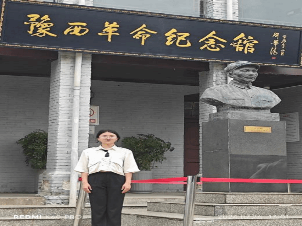青春“红”途爱国主义教育实践团队9名队员深入全国6个不同城市,参观其特色红色爱国主义文化基地,探寻红色基因,追忆红色历史,缅怀革命先烈,重温革命情怀。在潍坊,田欣冉等成员前往红色鲁中纪念馆,感受历史的重量与英雄的光辉交相辉映,她表示此次参观不仅是对历史的一次深刻回顾与致敬,更是一次心灵的洗礼与升华。我们要积极传承和发扬革命先烈的精神遗产,将这份宝贵的财富转化为实际行动的力量。在平顶山,乔涵雪等成员前往豫西革命纪念馆,近距离感悟革命先烈的崇高精神和不朽风范,她深感红色基因是共产党人的生命密码,她表示定将牢记党的初心和使命,为实现中华民族伟大复兴的中国梦而努力奋斗。在重庆,向悦同学怀着崇敬与肃穆之情走进了刘伯承同志纪念馆,主展览馆分内外两进院落,以回廊相连,刘伯承元帅的一生,是为民族独立、人民解放事业不懈奋斗的一生,他的英勇事迹和伟大精神,如同一座座巍峨的丰碑,永远矗立在我们心中。在青岛,王基正同学踏入青岛一战遗址博物馆的大门,穿越了时空的隧道,回到了那个烽火连天的年代。那些锈迹斑斑的炮弹、残破的军服和褪色的旗帜,都是战争残酷的见证。它们静静地躺在那里,却让人不禁想象当年士兵们的英勇与牺牲,以及普通百姓在战火中的苦难与坚韧。
