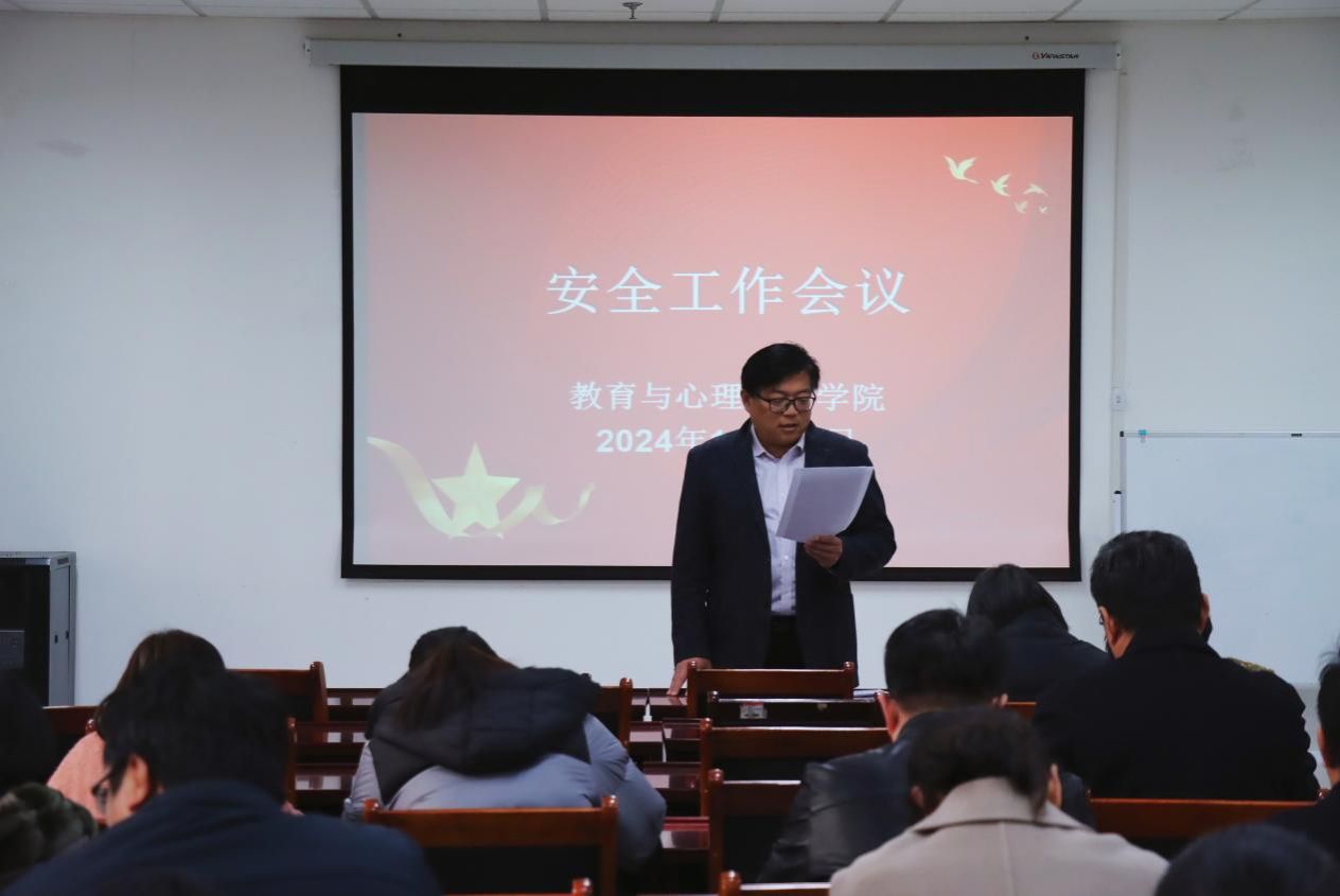为深入学习贯彻习近平总书记有关重要指示批示精神,认真落实全省教育系统安全稳定工作部署会议精神,传达学校会议精神,12月3日下午,教育与心理科学学院召开了安全工作会议,学院党委书记季竹君主持会议并讲话,学院全体教职工参加会议。