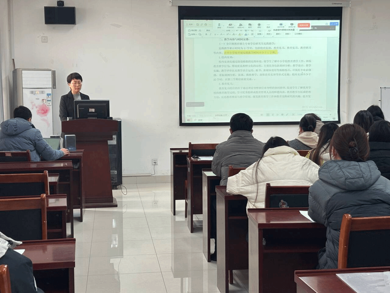 2月25日,教育与心理科学学院在302会议室举办了2023级专业学位研究生实习动员大会,会议采取线下与线上相结合的方式举行,参加会议的有学院副院长杨鹏、教育硕士教育中心主任魏淑华、应用心理专硕负责人杜秀芳、教育硕士研究生各领域负责老师、教育实习指导教师以及2023级全日制专业学位研究生。