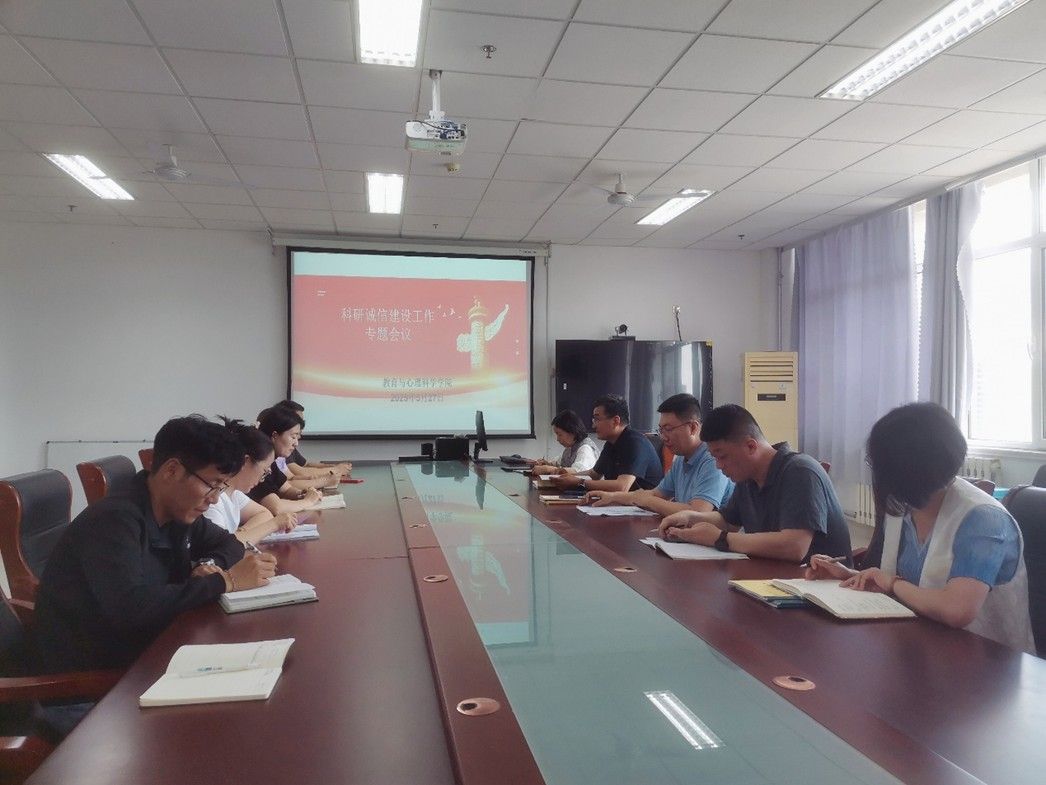 2025年5月27日,教育与心理科学学院党政领导班子召开科研诚信建设专题工作会议,深入学习贯彻国家及教育部关于加强科研诚信建设的重要文件精神,分析学院科研诚信工作成效,部署下一阶段重点任务。会议由学院副院长杨鹏主持,学院党委成员、院长陈功香、党支部书记和教师代表参会。