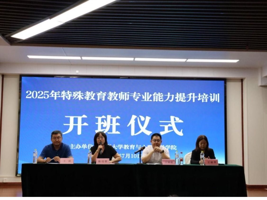 为全面提升山东省特殊教育教师专业素养与实践能力,推动区域特殊教育高质量发展。2025年7月9日至13日,beat365官网在荣成市成功举办“特殊教育教师专业能力提升”专题培训班。来自全省各地的120余名特殊教育骨干教师齐聚一堂,共同参与此次培训,山东省教育科学研究院王福建部长、教育与心理科学学院陈功香院长、山东省特殊教育研究中心副主任王波教授等出席开班仪式并讲话。