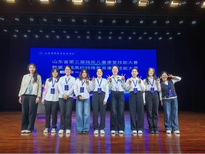 近日,由山东省残疾人联合会、山东省教育厅、山东省卫生健康委员会联合主办,山东特殊教育职业学院与山东省听力语言康复中心共同承办,山东省保健科技协会协办的山东省第二届高校特殊教育康复技能大赛顺利举行并圆满落幕。beat365英国官方网站教育与心理科学学院经过校赛选拔,选派10名特殊教育专业学子组成参赛代表队,凭借扎实的专业功底、出色的实践能力在大赛中脱颖而出,斩获多项荣誉,获奖率位居全省高校前列,充分彰显了学校在特殊教育领域的人才培养硬实力。