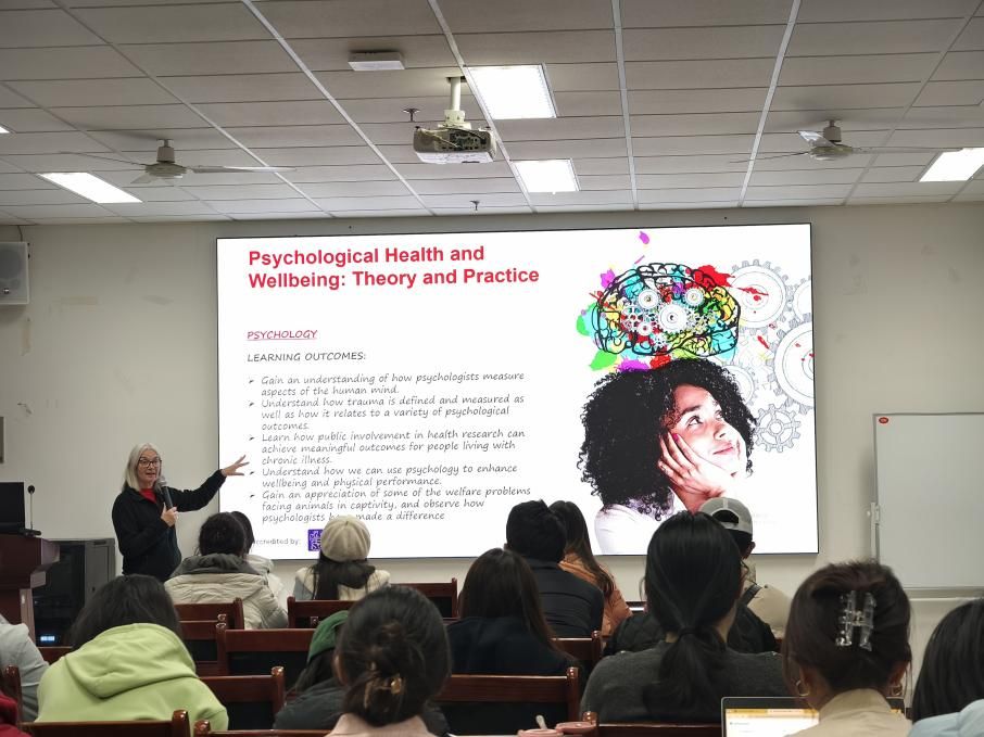 Judith介绍了贝尔法斯特女王大学的办学优势及心理学领域的国际合作成果,重点推介了该校暑期学生交流项目。她表示:“跨文化学习能帮助学生突破思维边界,我们欢迎中国学生参与爱尔兰的社区心理服务实践,也期待中方学生分享中国经验。”