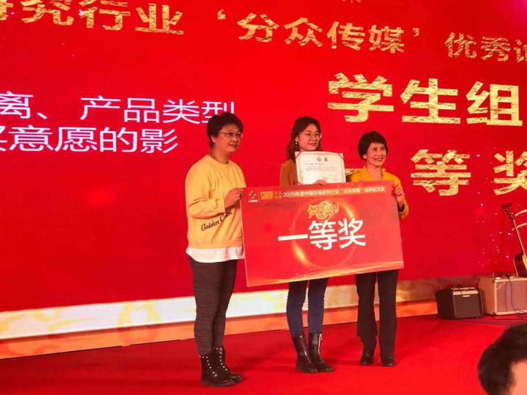 2020年11月11日,由中国信息协会市场研究业分会(CMRA)主办、分众传媒冠名的2020年“中国市场研究行业‘分众传媒’优秀论文奖”决赛在成都举行。教育与心理科学学院李开云和林丰勋教授指导,付可可、程雪晴、牛伟梅、郭延娜和赖一菲同学提交的《秩序“景”然:心理距离、产品类型对价格-质量评价、购买意愿的影响——秩序的调节作用》论文经现场答辩和专家评审委员会评议,获得(学生组)一等奖,奖金2万元。学院大力支持此次比赛,学院党委书记牛瑞斌、佟月华教授、林丰勋教授和刘如喜老师出席答辩现场。