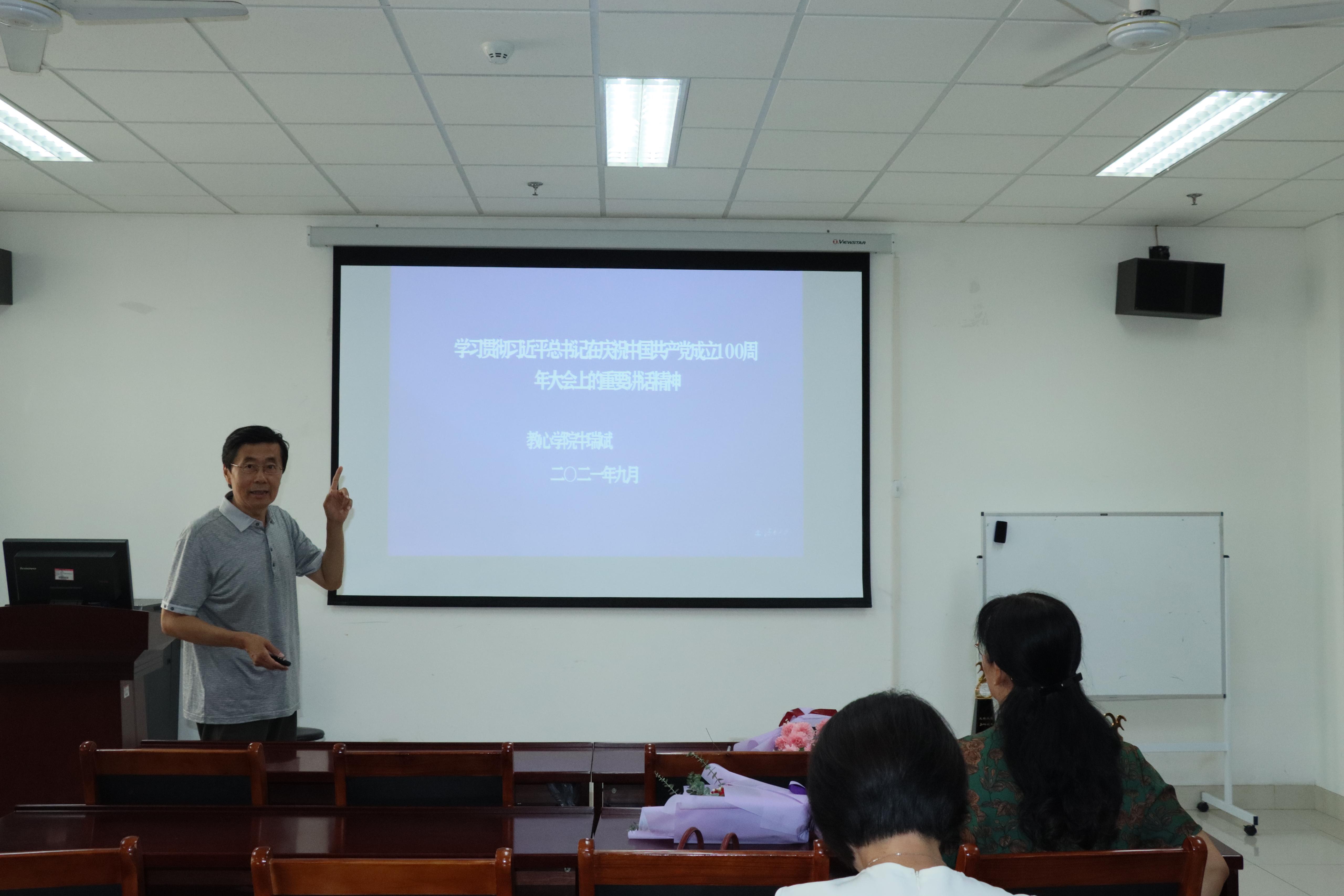 9月14日,教育与心理科学学院举办习近平总书记“七一”重要讲话精神专题宣讲会。学院党委书记牛瑞斌作专题宣讲报告,学院全体教师参加了报告会。