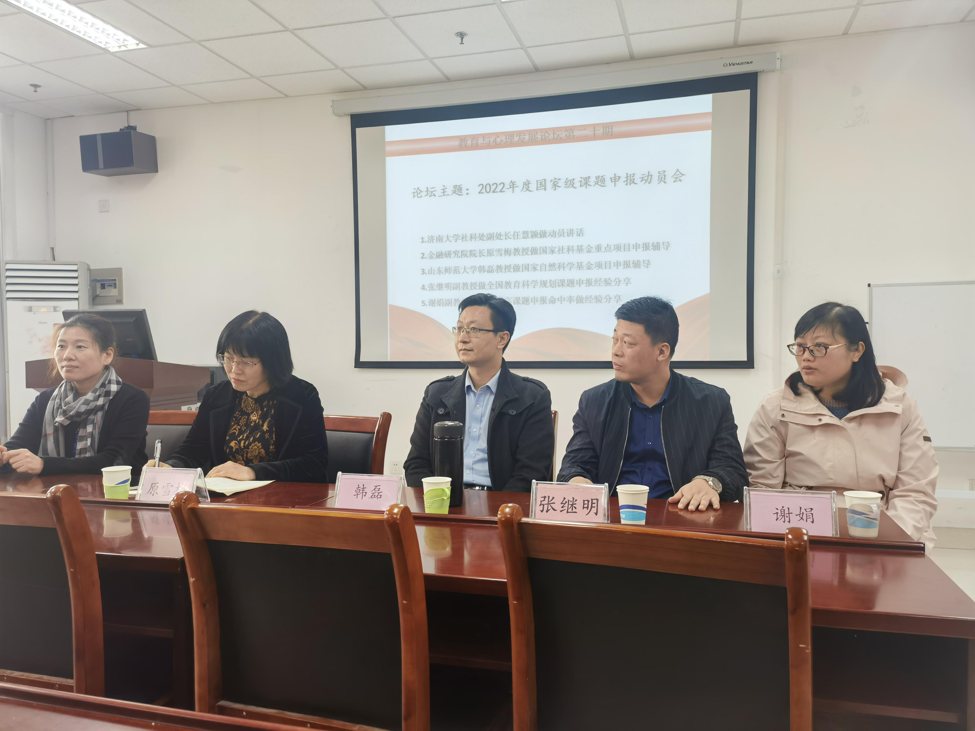 为促进教师科研能力和科研素养的提升,加强教师之间科研信息的沟通和交流,推进学院科研工作再上新台阶,10月19日,教育与心理科学学院开展第20期教育与心理发展论坛。论坛由陈功香副院长主持。beat365英国官方网站商学院原雪梅教授、山东师范大学韩磊教授、社科处副处长任慧颖、高等教育研究院张继明副教授和教心学院谢娟副教授分享了自己的课题申报经验,教育与心理科学学院和高等教育研究院的教师参加了该论坛。