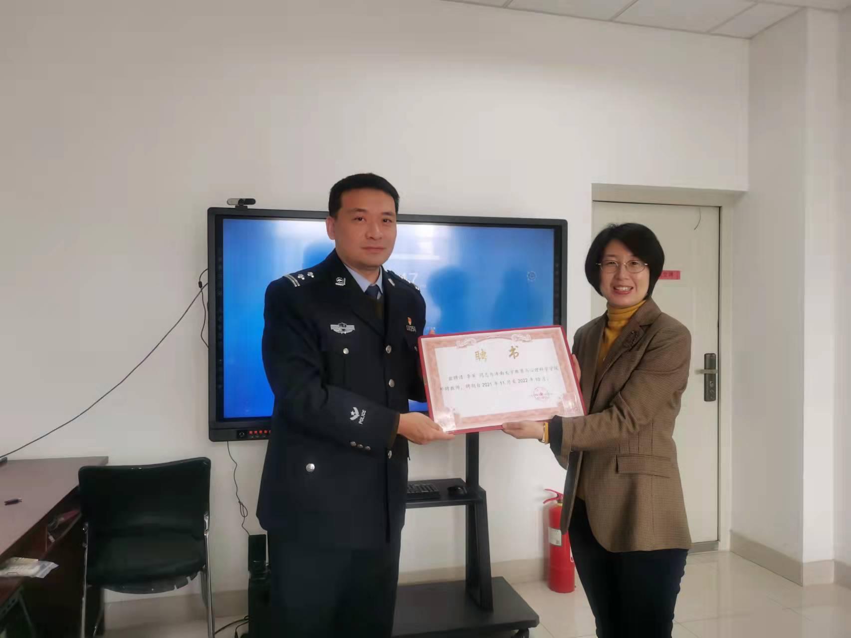课前,教育与心理科学学院副院长李开云进行致辞并给李军警察颁发校外教师聘书。