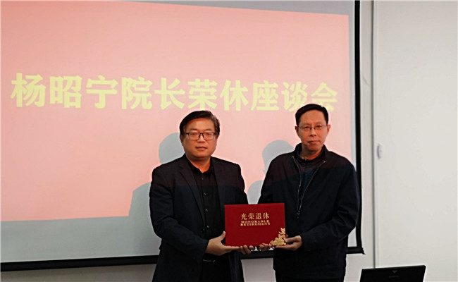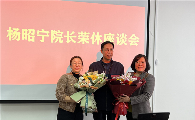 座谈会首先由学院党委书记季竹君代表学院全体教职工向杨院长表示最崇高的敬意和最美好的祝福,感谢其为学院的学科建设、专业发展、人才引进、科学研究、社会服务等各方面做出的重要贡献,祝愿杨院长开启新的篇章,使荣休后的生活充满阳光与快乐,同时也保留一份挂牵之情,能够继续关心并支持学院的各项工作,常回家看看,用自己多年的丰富工作经验继续为学院发展建言献策,学院也将为杨院长的退休生活做好服务保障。之后,季竹君书记代表学校向杨昭宁院长颁发荣休证书,陈功香院长等为杨昭宁院长赠送鲜花和荣休纪念品。
