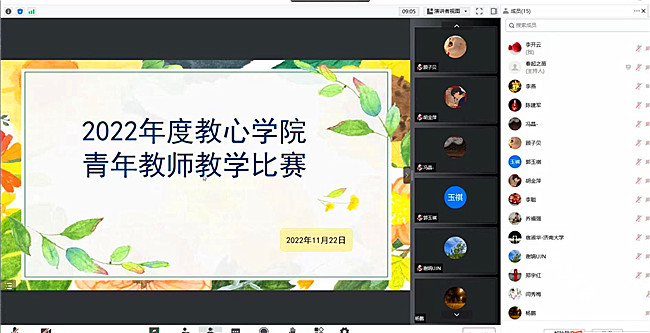 为深入贯彻落实立德树人根本任务,引导青年教师加强教学改革创新,提高青年教师课堂教学质量水平,学院于11月22日下午在线开展了40岁以下青年教师的教学比赛,学院教学指导委员会委员及部分督导委员会委员作为比赛评委。比赛活动由李开云副院长主持。