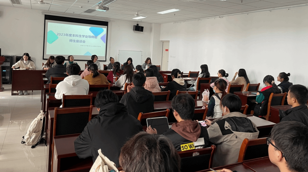 为了进一步提高人才培养质量,更好推行学业导师制,根据《beat365英国官方网站本科生学业导师制实施意见》(济大校字〔2014〕123 号)相关要求,深入了解学院本科生导师制运行情况,收集本科学生对学院学业导师制工作的意见和建议, 学院于2023年11月7日下午在特教大楼A302会议室召开2023年度本科生学业导师制师生座谈会。学院教学副院长李开云、心理系系主任冯晶、特教系系主任宿淑华、教育系系主任王玲、各年级辅导员、学生工作办公室、教学管理办公室负责人及2021-2023级各班学生代表参会,会议由李开云主持。