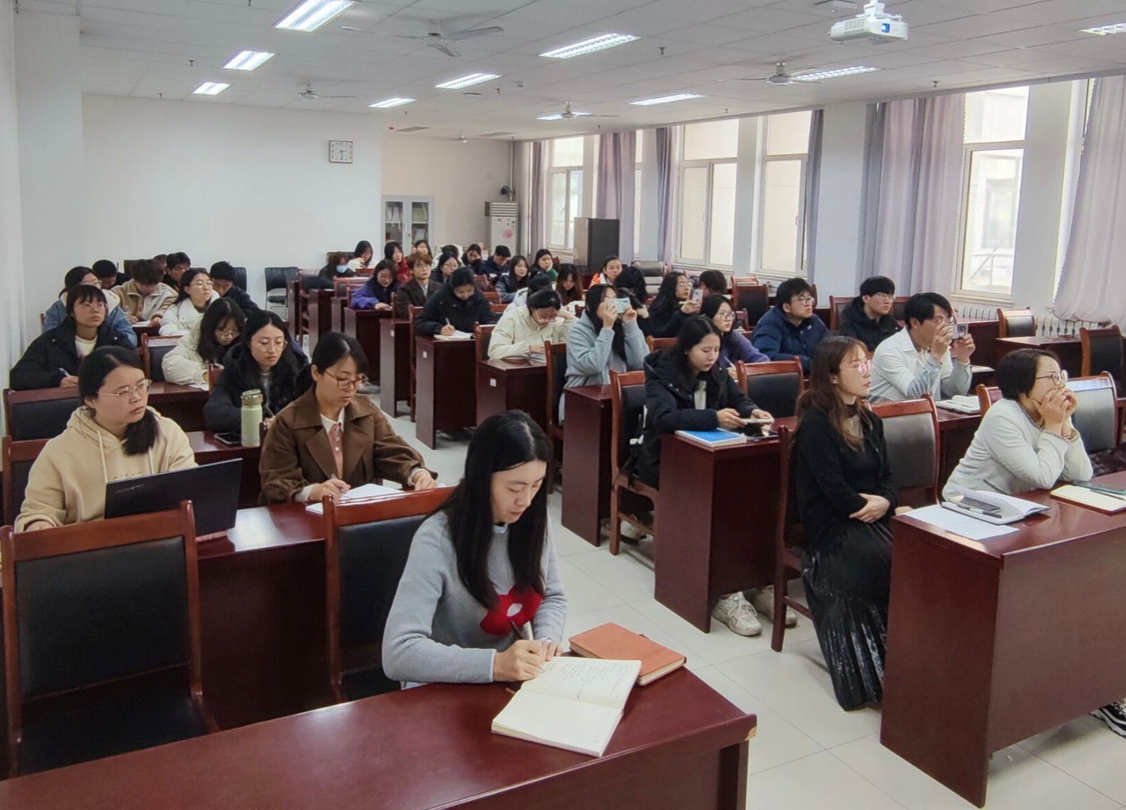 季竹君书记结合自己多年的新闻写作实践,引用大量生动鲜活的案例素材,从新闻的定义、消息的结构、如何培养新闻写作能力及提升写作技巧、摄影基础知识等方面剖析好新闻的创作要点。他指出,新闻宣传要立足学校、学风、学者、学科、学术、学生,着眼身边人、身边事、重要节点、重要事件;要注意培养新闻敏感度,在熟悉学校重要工作、熟悉相关政策法规、熟知学校重要节点的基础上,把握细节深度、提前宣传策划、把好发布时效。