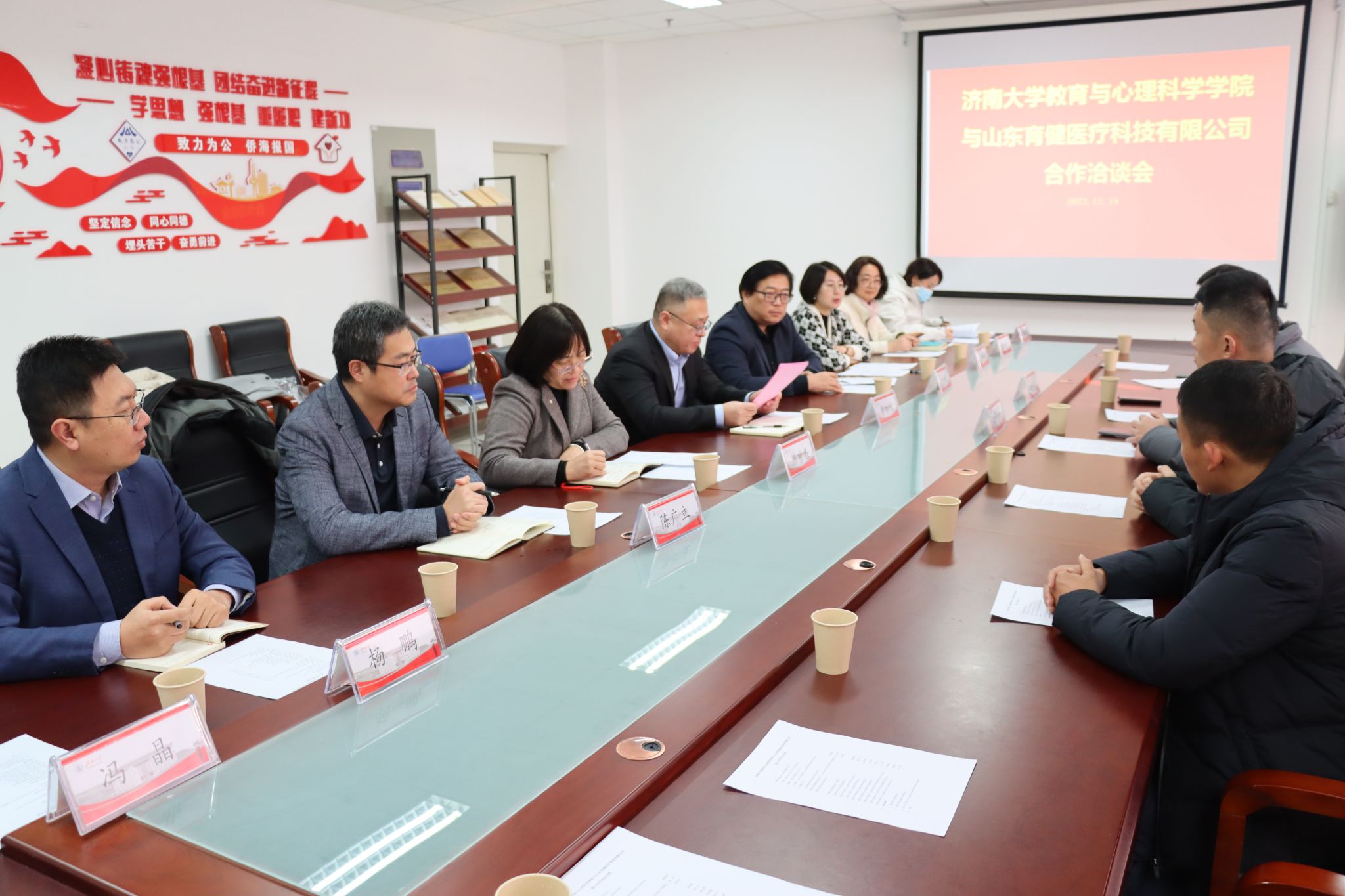 黄加栋对总经理邹雪茜和杜华民一行表示欢迎,感谢山东育健医疗科技有限公司的爱心善举,期待教育与心理科学学院与山东育健医疗科技有限公司联合成立研究院后能够开展更深层次的交流与合作,并表示beat365英国官方网站一定会把这份爱心转化为发展的动力,用优异的育人成果来回馈社会。邹雪茜总经理感谢教育与心理科学学院给予山东育健医疗科技有限公司此次合作机会,公司后续将与学院在成果转化、人才培养、社会服务等方面开展合作,全力支持学院发展。
