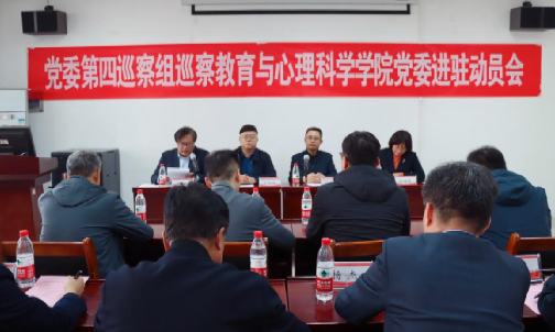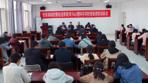 张存凯传达了学校党委关于巡察教育与心理科学学院党委工作相关部署安排,要求教育与心理科学学院党委统一思想、提高认识,切实加强党的全面领导,旗帜鲜明地支持配合巡察工作,全面提升学院办学水平和育人质量,推动学院高质量内涵发展。
