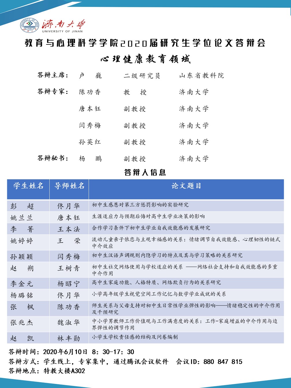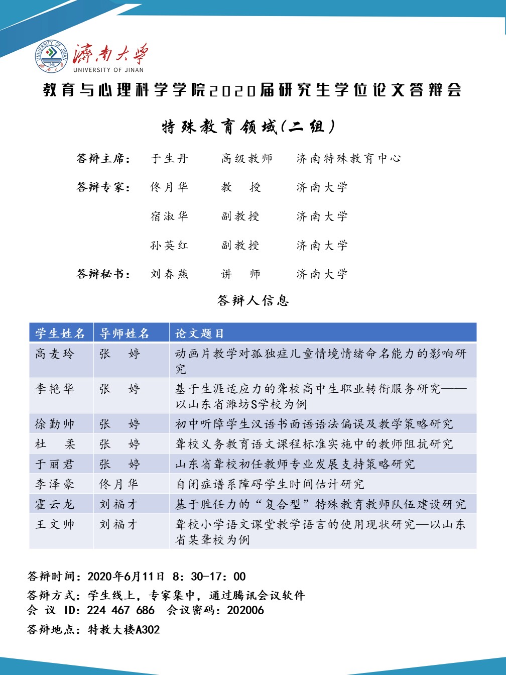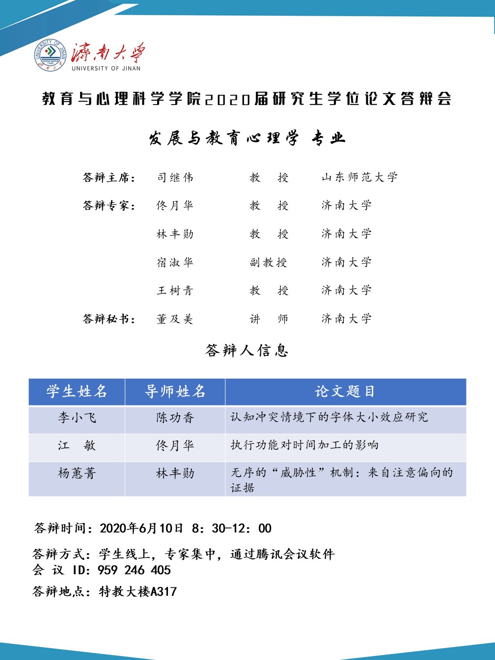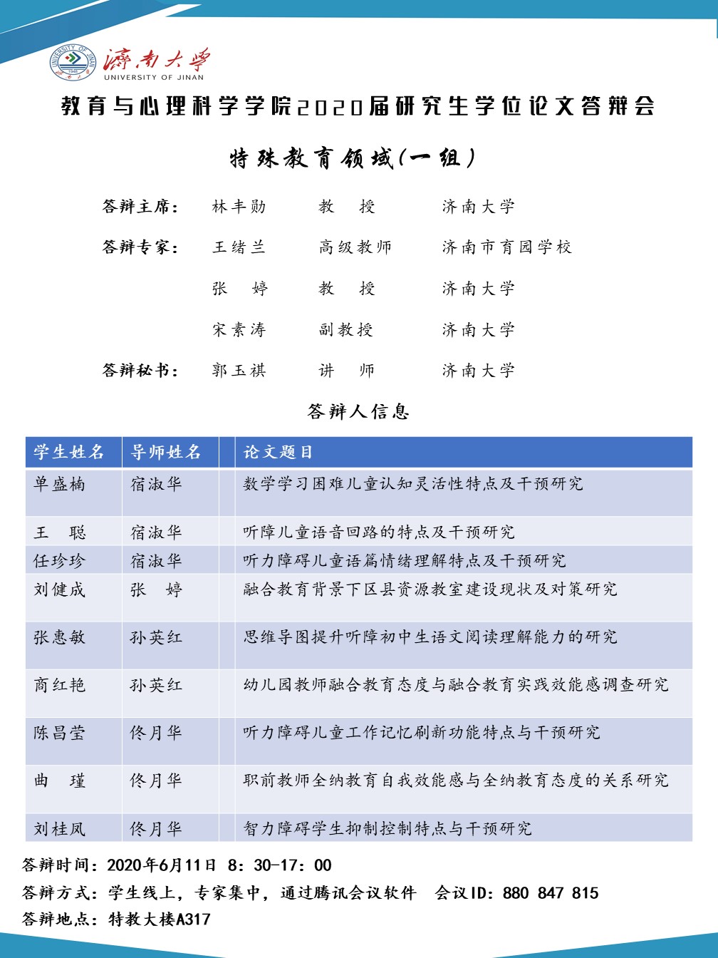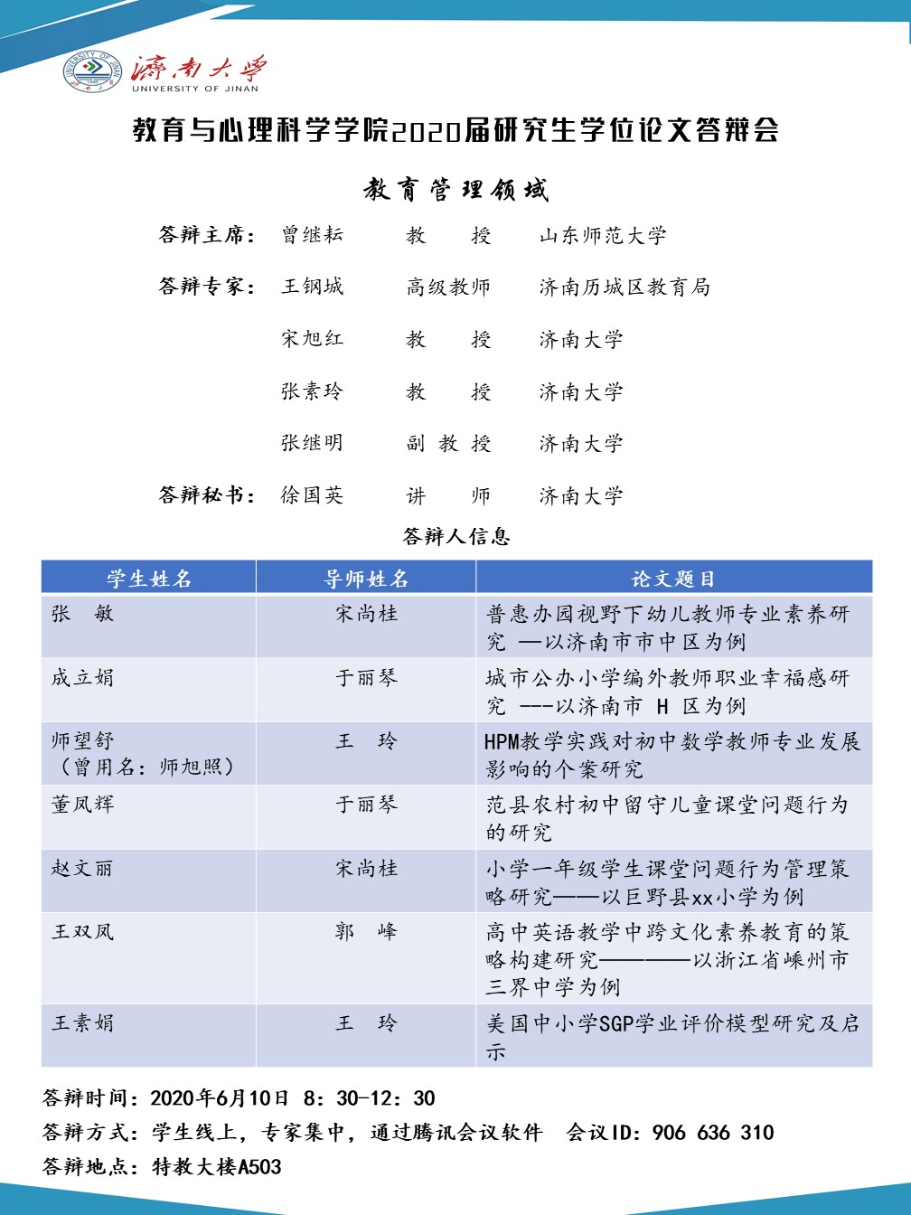 教育与心理科学学院2020届研究生答辩安排