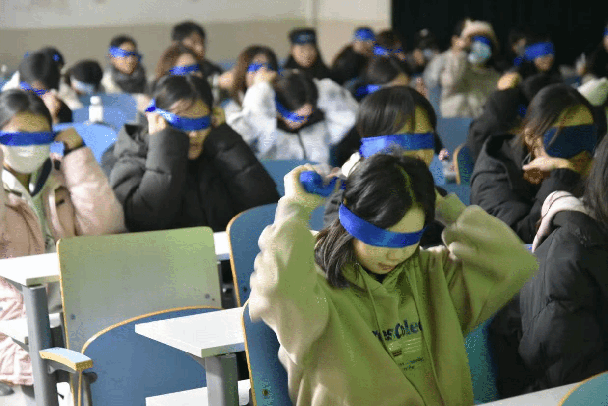 本次活动通过沉浸式的观影体验,让现场观众亲身体验盲人的生活方式。活动开始前,工作人员为每位参与的同学分发了眼罩。在活动中,随着电影原声的悠扬响起,讲述者那富有感染力的声音也如同涓涓细流般流淌,生动地描绘出电影中的每一幕场景和每一个细节。电影落幕时,同学们纷纷表示,只有真正置身于盲人的世界,才能深刻体会到他们的困难,将来会尽己所能去关爱这些特殊群体,用实际行动传递爱与温暖。