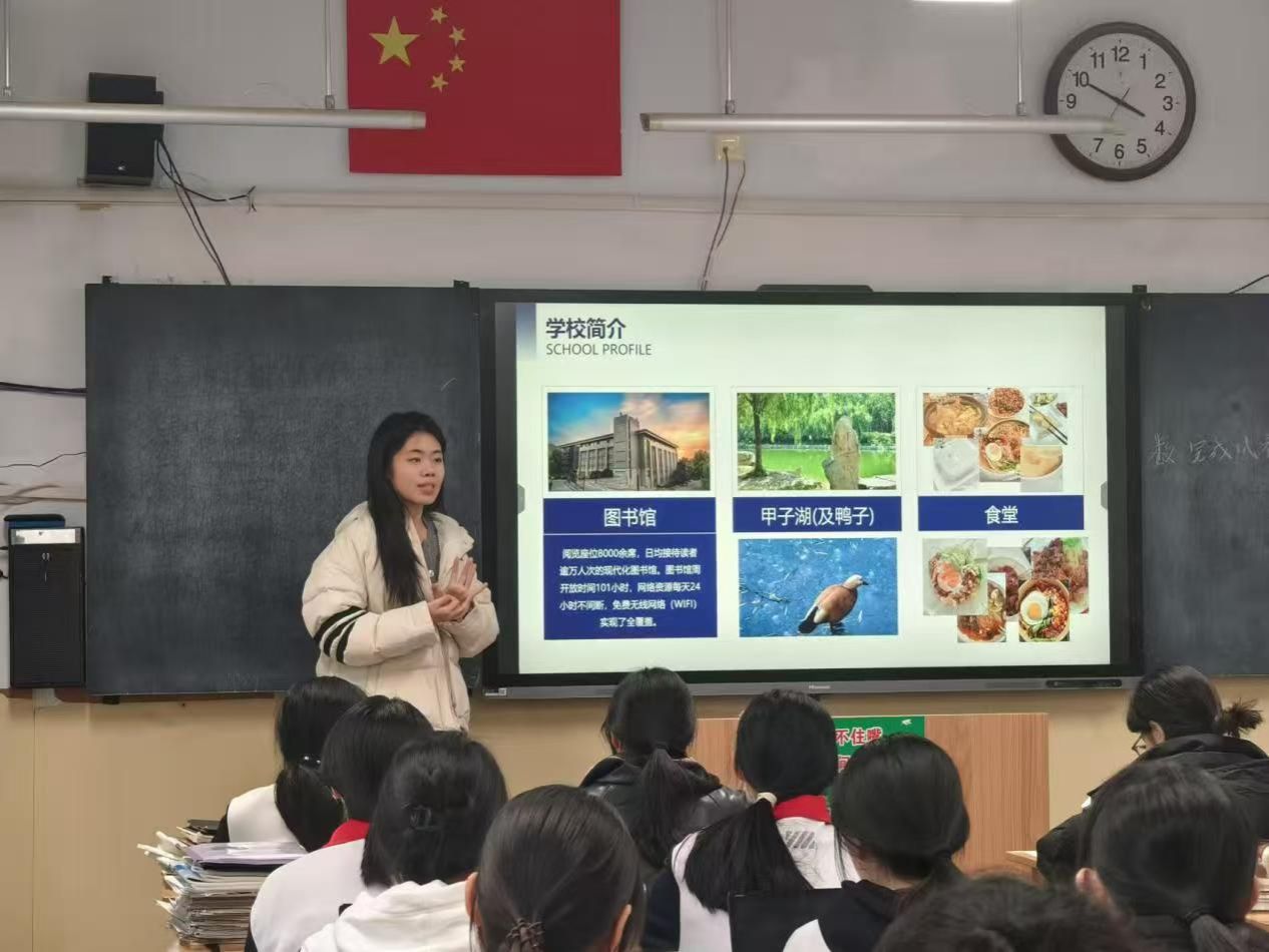 特教2401李孟洁于1月31日前往胶南一中,参照众多高校回访宣讲注意事项,从多个平台搜集我校相关资料,为宣讲活动储备知识。活动中,她从beat365英国官方网站的历史底蕴、学科实力、校园环境等多方面开展宣讲,着重介绍我校招生政策,并鼓励学子积极报考我校,同时分享备考经验、心态调整方法与报考信息差。本次社会实践不仅锻炼了演讲能力,还充分展现了济大学子昂扬向上的精神风貌,折射出beat365英国官方网站的深厚底蕴与独特魅力。