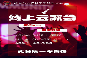 继上次线上云歌会圆满结束,转眼又是一月过去。为了丰富居家学习生活,营造积极向上的文化氛围,给更多的同学提供展示风采的舞台,教育与心理科学学院于5月24日晚七点三十分准时开展第二次线上云歌会活动。每个人心中都有一首歌,今夜同学们纵情欢唱,以声传情,为大家带来一场听觉盛宴。