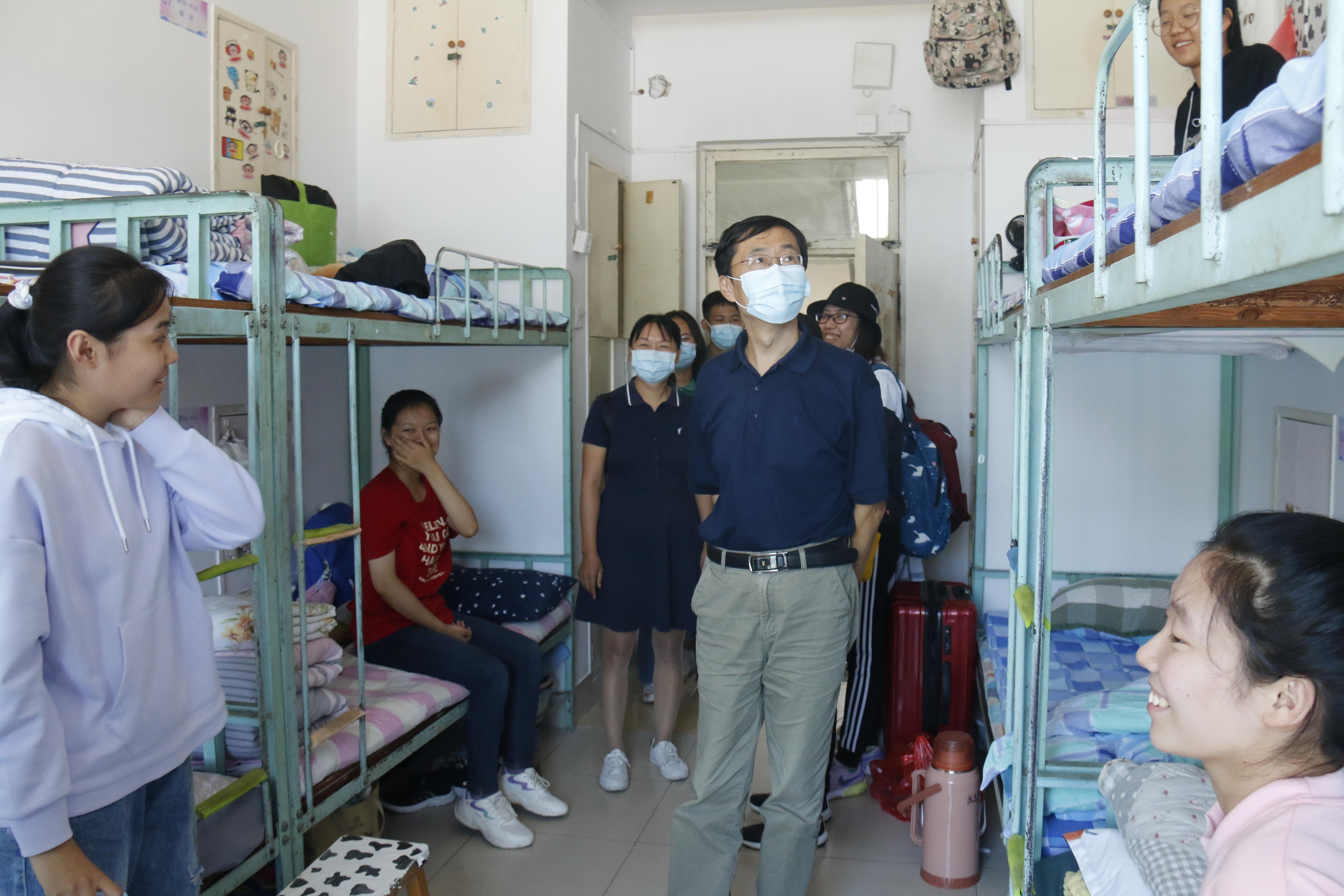 为了进一步了解新生的入学情况,加强新生宿舍的安置与管理,帮助新生更加安全、有序、迅速地迎接大学生活,9月17日下午,教育与心理科学学院党委书记牛瑞斌,党委副书记、副院长卢琦与新生辅导员魏文静走访了学院新生宿舍,与新生面对面交流。