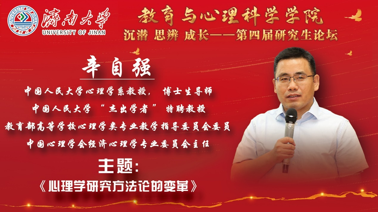 为推进学院研究生心理学研究工作进一步开展,提高研究生心理学学术研究的专业能力,教育与心理科学学院第四届第三期研究生论坛于2021年11月30日在线上成功举办,邀请中国人民大学心理学系教授、博士生导师、中国人民大学“杰出学者”特聘教授、教育部高等学校心理学类专业教学指导委员会委员、中国心理学会经济心理学专业委员会主任辛自强老师开展了题为《心理学研究方法论的变革》的主题讲座,由杨鹏老师主持,学院20级研究生和21级研究生以及部分教师参加了此次论坛。