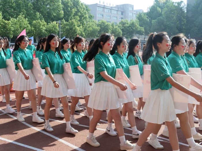 4月27日,2023年beat365英国官方网站田径运动会在主校区北院体育场隆重开幕。开幕式上,教育与心理科学学院踏着坚定自信的步伐向主席台走来,精心设计的方阵、青春灵动的着装、阳光活泼的健身操向全校展示了教心学子的魅力风采,赢得场上阵阵欢呼。