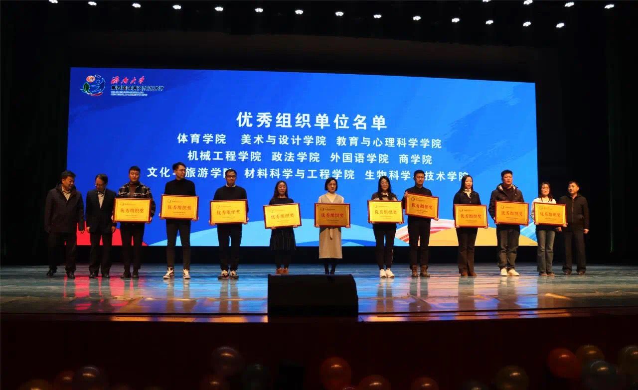 晚会在历届体育艺术节的精彩视频中拉开帷幕,共分为表彰与表演两大环节。本次校园体育文化艺术节从五月份持续到十月下旬,举办了真人CS比赛、跆拳道比赛、街舞大赛等各类文艺体育赛事。教育与心理科学学院师生积极参加、表现出色,涌现出许多优秀作品并获得奖项:气排球比赛项目中荣获团体奖第七名;武术大赛八段锦与太极拳项目中分获一等奖与二等奖和团体比赛四等奖;傅芷夕等同学在跆拳道比赛中荣获一等奖;张文锦等同学在街舞比赛中荣获二等奖;衣城清等同学在体育类绘画、书法、摄影比赛中获优秀奖等。最后,由党委常委,李强副校长宣布教育与心理科学学院获得优秀组织奖,为此次活动画上圆满句号。