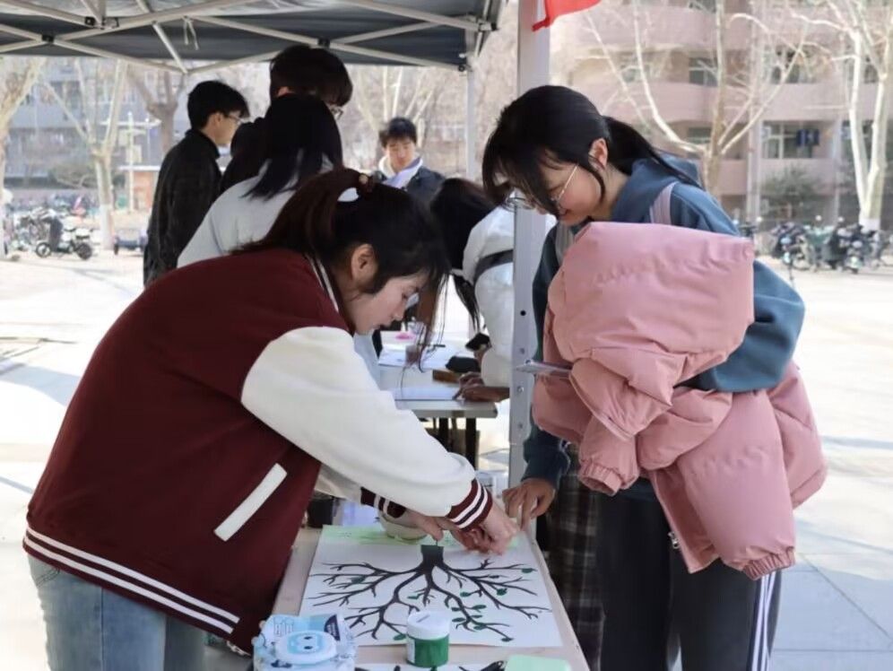 为深入学习贯彻习近平生态文明思想,增强大学生保护环境的意识,鼓励学生投入到生态文明建设的实践行动中,3月10日,教育与心理科学学院在八食堂广场举办植树节创意活动。