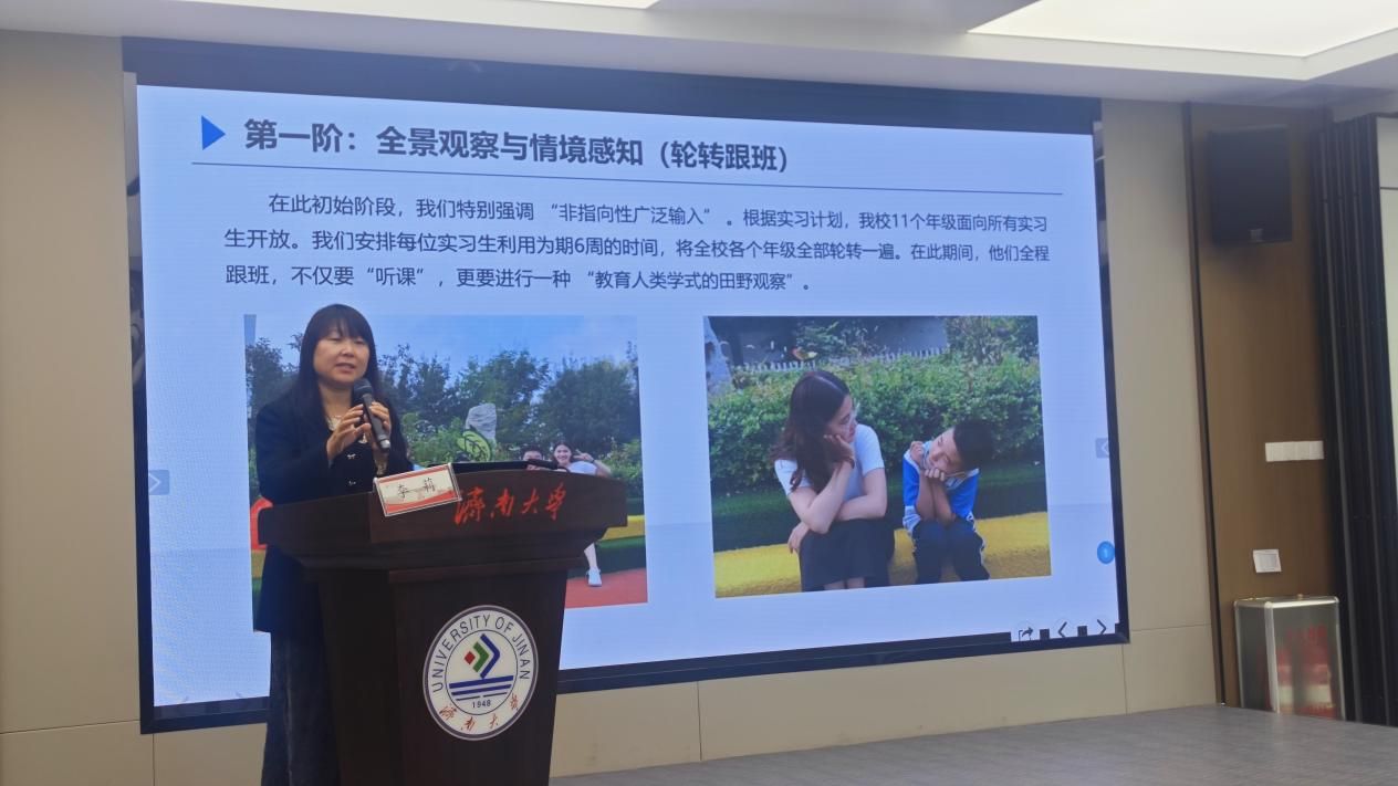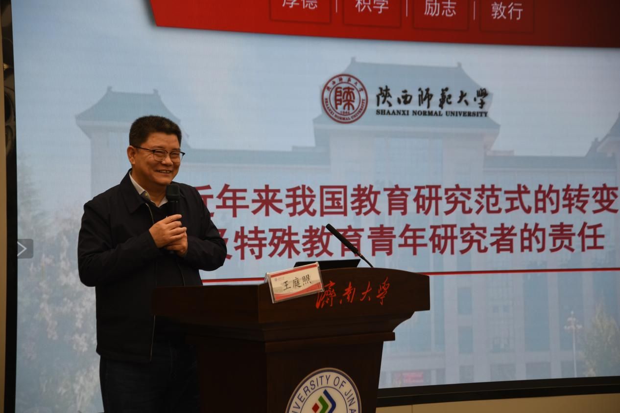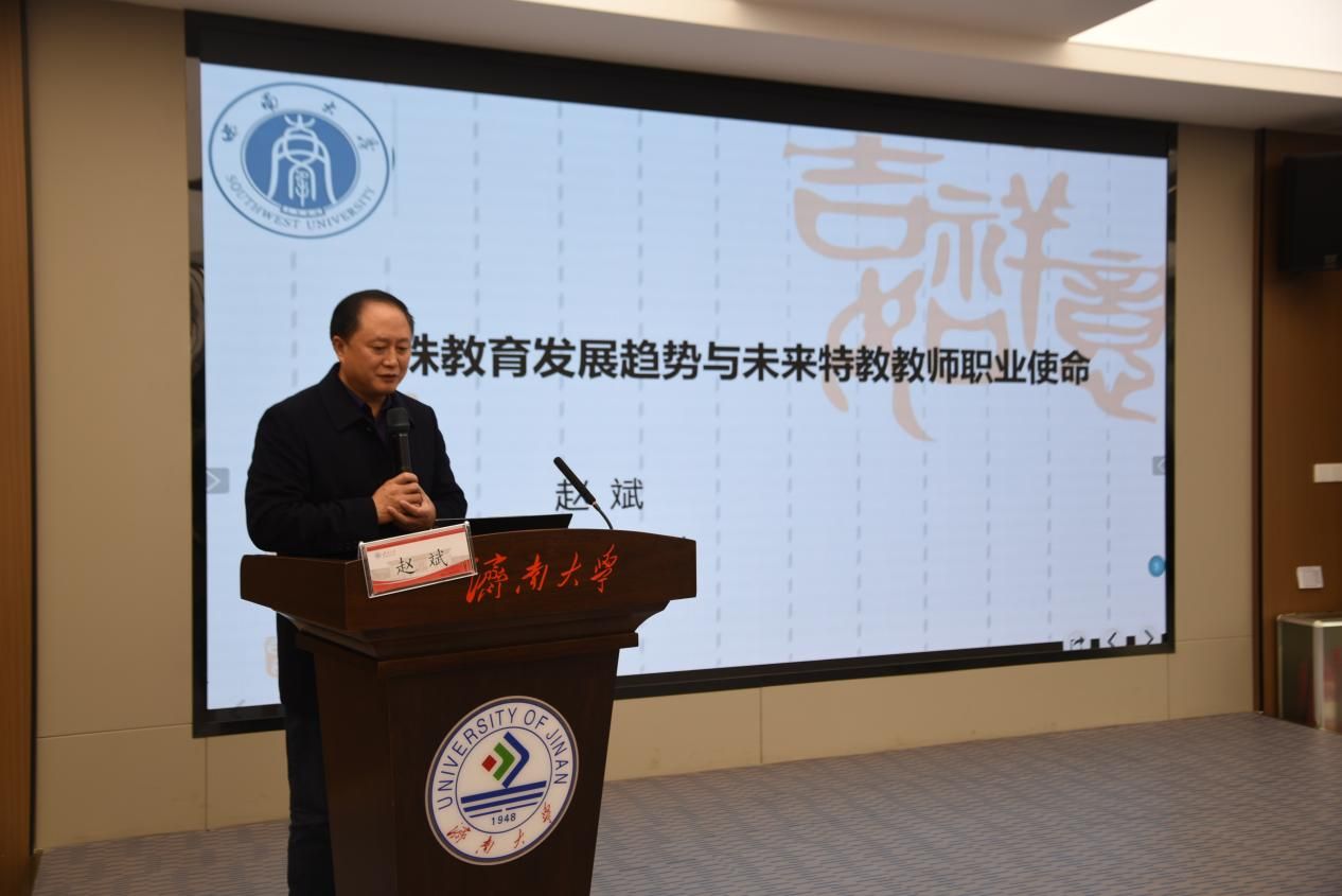 主题报告环节,三位特邀专家分享了前沿学术成果与实践经验。陕西师范大学教育学部副部长王庭照教授以《近年来我国教育研究范式的转变及特殊教育青年研究者的责任》为题,梳理了教育研究从经验总结向证据本位、从单一学科向跨学科融合的转型趋势,强调青年特教研究者需强化理论反思与实证研究素养,肩负起推动学科建设与服务一线实践的双重使命。西南大学教育学部特殊教育学院院长赵斌教授指出,融合教育、科技赋能与个性化支持是当代特教发展的核心方向,未来特教教师需具备跨专业协作、数据化评估与差异化教学等关键能力,实现从“知识传授者”到“成长支持者”的角色转变。博山区特殊教育中心学校校长李莉基于校地共建实习基地的实践,分享了“六阶递进”特教师范生实践能力培养模式,诠释了“以生为本、实践为要、协同为翼”的育人理念,呈现了从机制搭建到实践落地的完整闭环。
